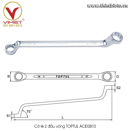 Cờ lê 2 đầu vòng 45 độ TOPTUL AAAH0607